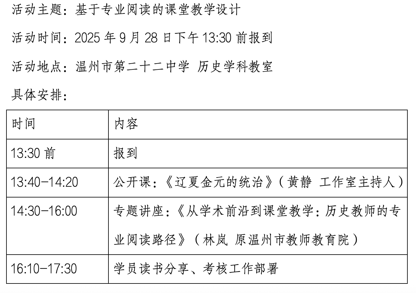 关于举行温州市高中历史黄静“名师送教”工作室第17次活动的通知