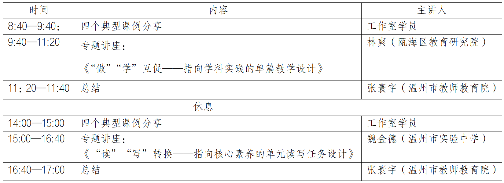 关于举行温州市张寰宇“名师送教”工作室第29次活动的通知