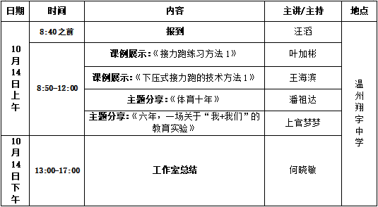 关于举行温州市何晓敏体育“名师送教”工作室第14次活动的通知