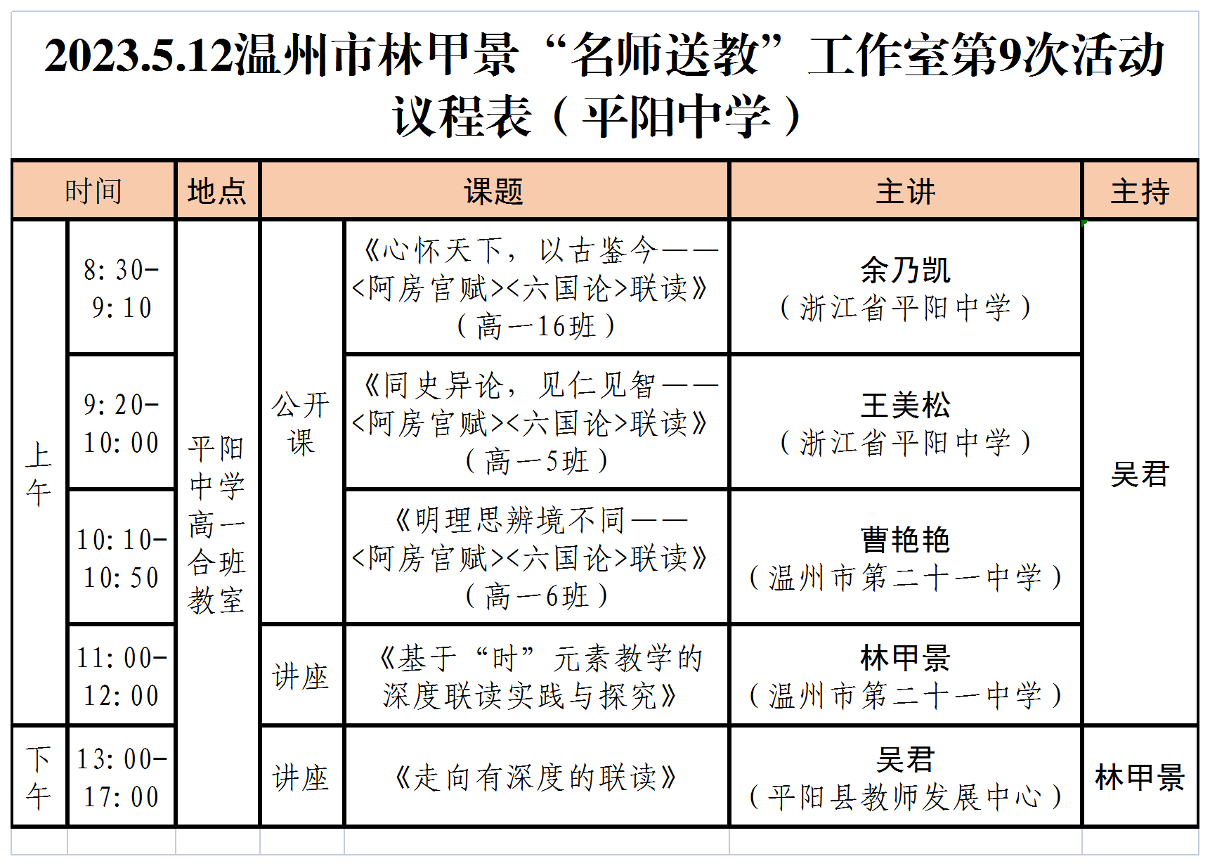 关于举行温州市林甲景“名师送教”工作室第9次活动的通知