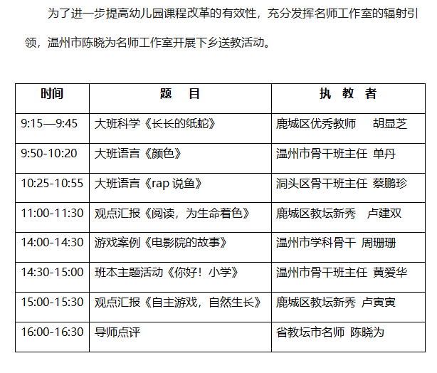 关于举行温州市陈晓为幼教名师工作室第6次活动的通知