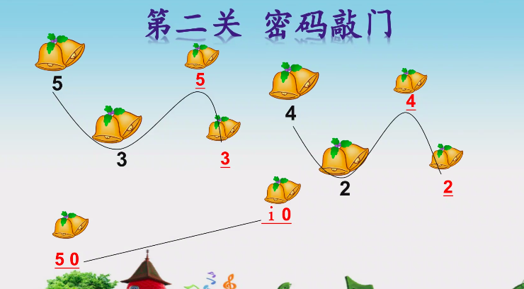 潘晓洁老师以密码敲门为关卡,通过课文手势演唱巩固音高——观察铃铛大小辨别节奏——关注音乐强弱(f、p)——加入力度变化完整演唱四个步骤,成功敲响了《音乐小屋》的大门。