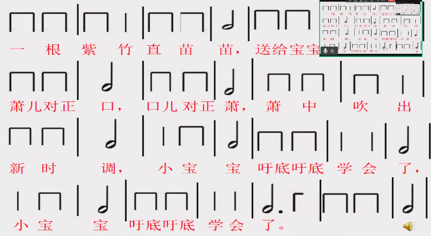 最后由朱肖琛老师甜美的嗓音做总结,为第二小组画上了一个圆满的句号。她提出,本单元以“跳动的音符” 为主题,围绕着音高、力度、音色展开一系列作品的感知和学习。在一年级的时候学生已对“音的强弱” 有了初步的认识,本单元将继续在《音乐小屋》中进行力度记号深层次的表现及运用,并在下一课《箫》的教学中能够对知识进行迁移;在音色上,单簧管学生已经有初步的认知,本单元学生将继续深入了解单簧管音色以外还要了解箫以及吹管类弦乐的认知及音乐风格:在音高上,低年级的孩子识谱能力还是比较弱的,我将用新体系的字母谱和柯达伊手势帮助孩子巩固音高,解决音准问题:在节奏上,我利用节奏谱帮助学生准确的把握节奏,为歌曲教学做好铺垫。