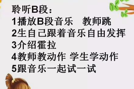 邵宁宁老师用温柔的声音讲述了她对《霍拉舞曲》这首歌曲的设计,以去罗马尼亚的图片进行情境导入,通过聆听音乐情绪、让学生感受音乐,学会欣赏《霍拉舞曲》。在教学中,通过分段聆听和感受霍拉舞曲的音乐,引导学生创编舞蹈动作,感受罗马尼亚人民的舞蹈,培养学生审美意识。随后通过合作舞蹈,拉进了师生关系。在乐曲的聆听中,引导学生为打招呼、舞蹈、告别三个音乐片段,设计了不同的舞蹈动作,这样更好地分师生合作,清晰了解每一段音乐,让每一位学生都能参与其中,激发了学生的学习兴趣,使学生更加积极的参与到教学环节中来。