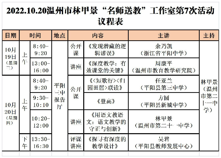 关于举行温州市林甲景“名师送教”工作室第7次活动的通知