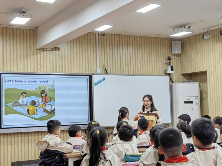首先,前汇校区的林晓静老师带来了一堂精彩的五年级词汇课:PEP 5 Unit 5 There is a big bed A learn。林老师立足单元整体充分挖掘教材资源,打通板块脉络,整合A部分let’s try的语篇进行备课,先由歌曲导入本课主情景“Zhang Peng’s room”,在情境中整体呈现核心词汇,通过watch and tick、choose and write、play a game、read and tick or cross等层层递进、难度螺旋上升的学习活动,落实学生对核心词汇音义形的掌握,内化小语篇的理解和运用,同时通过分类房间物品、观察个性化物品,提炼语篇意义,挖掘育人价值,最终引导学生能够个性化的介绍自己的房间,发展学生英语核心素养。