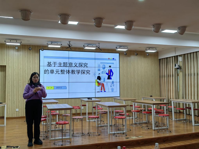 活动最后,周玉琴老师为下午的两节课进行了细致透彻的点评和指导,为老师们带来了满满干货。周老师指出,基于新课标理念下的单元整体备课思路要用足教材资源,充分挖掘文本信息,紧扣“研、制、展、拓”四个维度进行备课,为我们提供了“倒推式备课”的思路。同时,周老师强调活动设计应遵循理解、运用、创新的认知规律进行教学设计,活动与活动之间要注重逻辑有序,融评价于活动,教学评一体化,提高课堂精准度,真正做到赋能课堂。