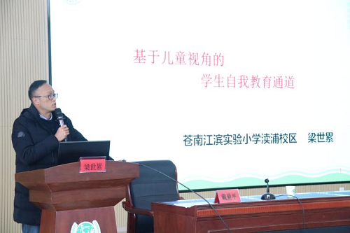 接着,省特级教师,正高级老师梁世累老师做了《基于儿童视角的学生自我教育》的专题讲座。梁老师通过夹菜、买玩具、孩子抢遥控器和手机、字迹潦草、上课捣乱等我们身边常见的实例为老师们分析了孩子每一种行为表现的背后隐藏着什么,提倡老师们不能只看见行为,更要看到孩子行为背后的诉求,对孩子的需求给予理解和回应,低姿走进孩子的心灵世界。