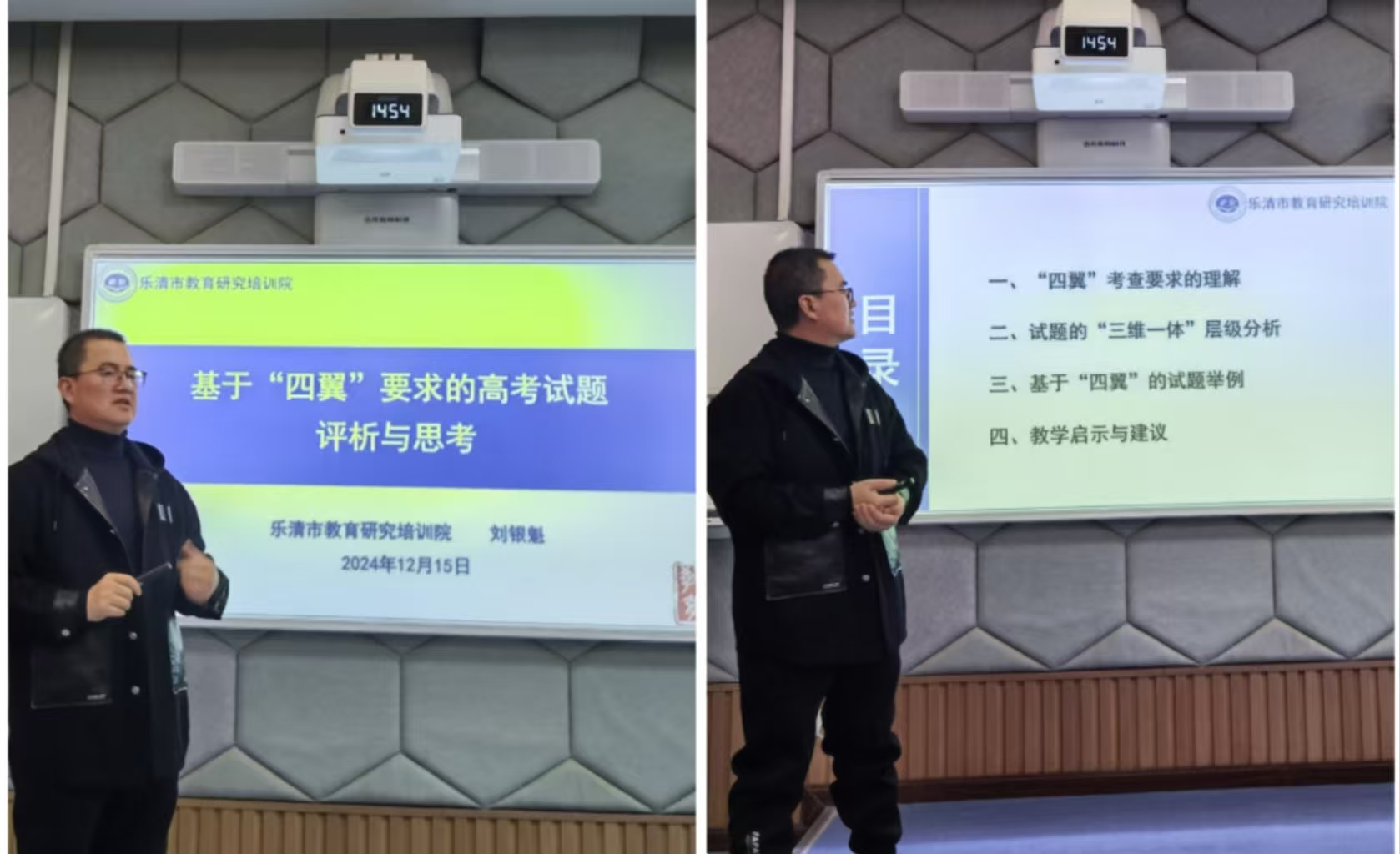 正高级教师、乐清市教育培训院刘银魁老师围绕 “基于‘四翼’要求的高考试题评析与思考” 这一主题,展开了深入且细致的讲解。