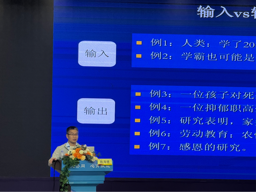 陈教授通过诙谐的互动开场,直指当前教师职业幸福感和学生发展密切相关。他以深入浅出、以小见大的方式,阐述了系统平衡观在学生心理问题分析中的重要性。他强调学生的心理状态并非孤立存在,而是与家庭、学校、社会等多个系统相互作用、相互影响。只有从整体的系统平衡角度出发,才能更全面、准确地理解学生心理问题的根源。陈教授结合丰富多彩的影视资源、图片、真实的学生案例,从心理层面深入剖析,帮助学员们理解学生行为背后的深层原因,精准识别问题本质。这种分析方式让学员们更全面地把握学生的心理动态。