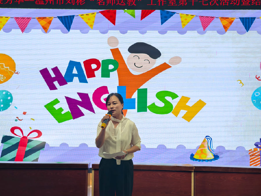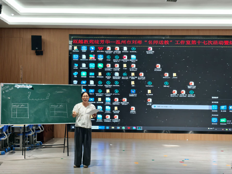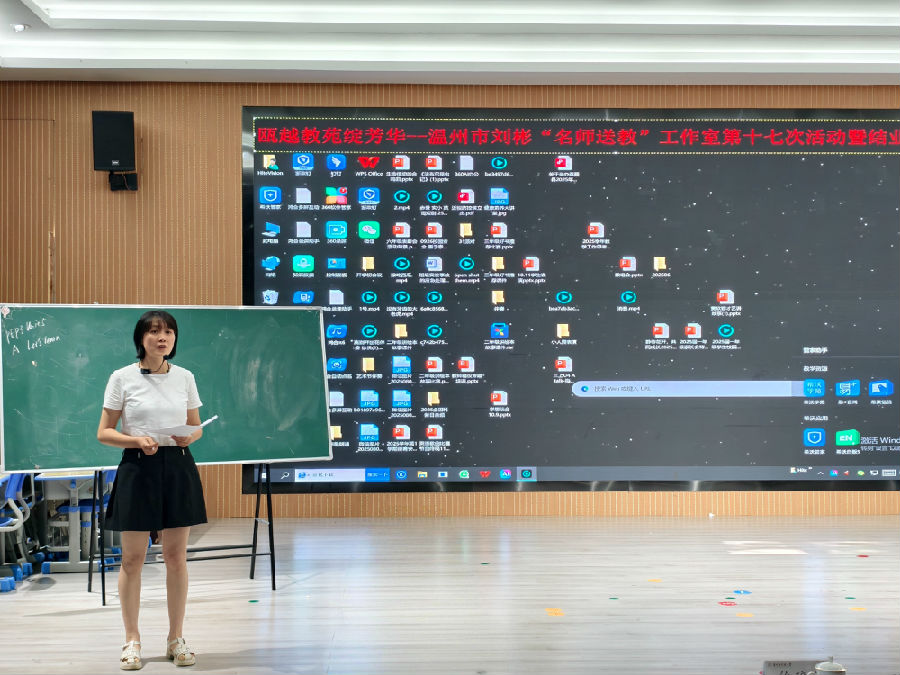 泰顺县文祥小学徐碎飞老师以《廊桥连研路:小学英语跨域研修的实践与成长》为题,全面回顾工作室 2023年10月成立以来的历程:秉持城乡资源联结理念,以“双新领航、四县联动、研课改课”为核心,开展17次跨县域及线上活动;成果显著,赋能区域研训提升及学员素养进阶,实现“同行到同心、成长到蜕变”。
